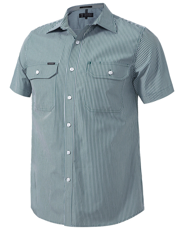 Pilbara Men's S/S Striped Shirt, Double Pockets